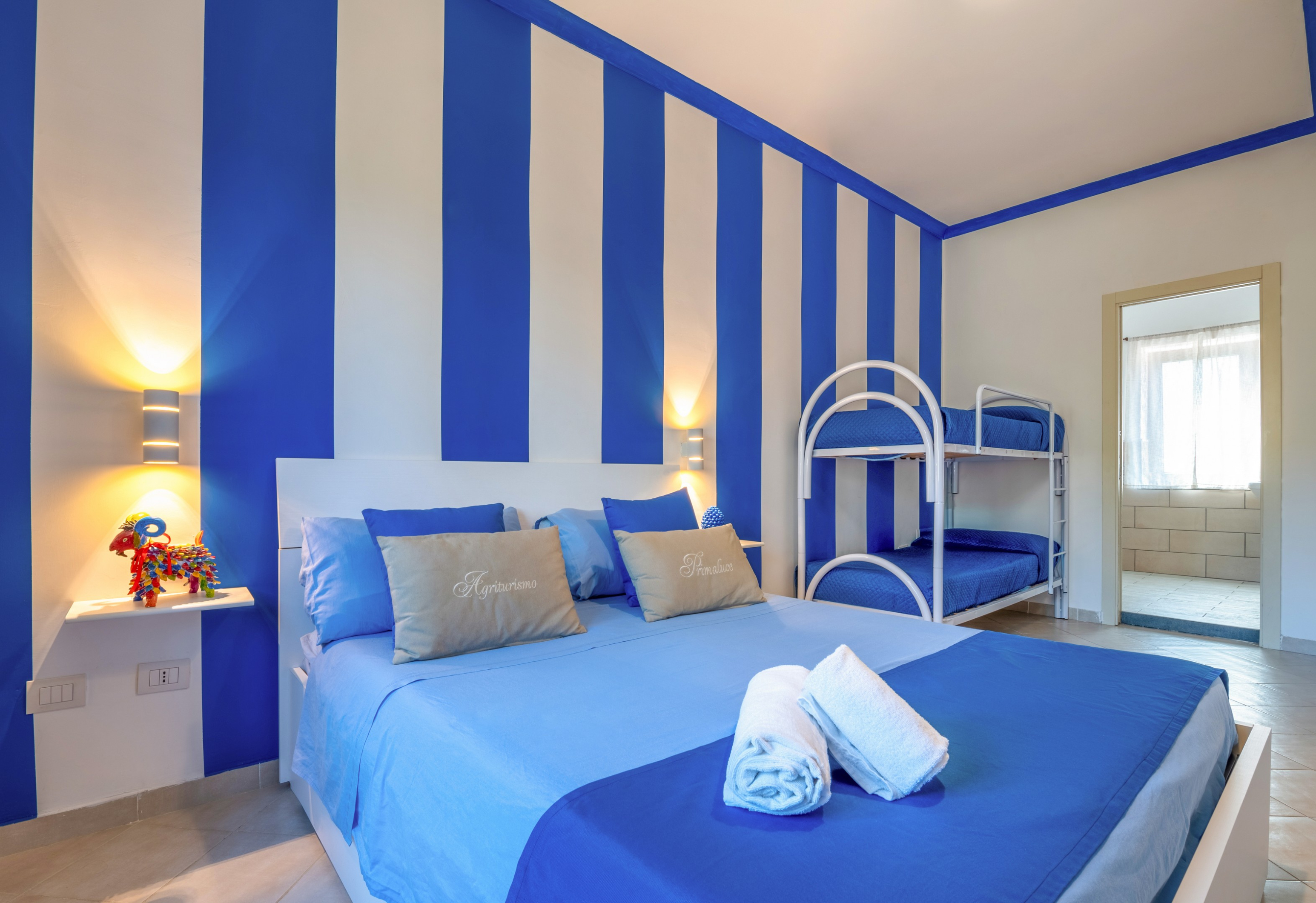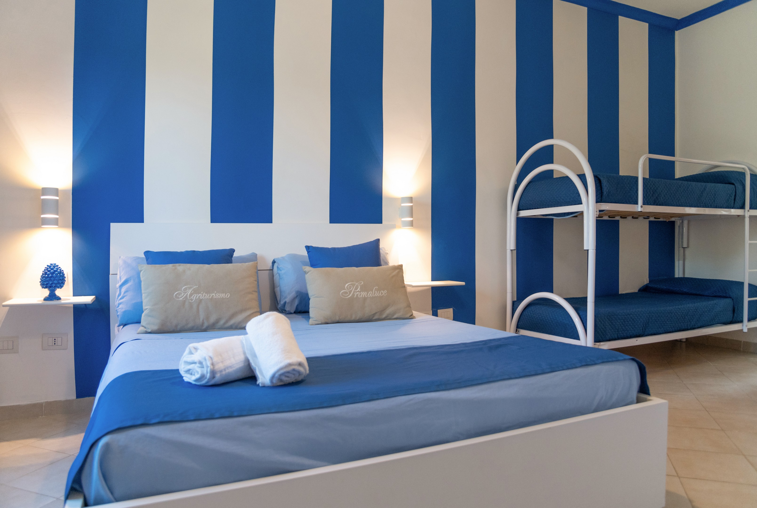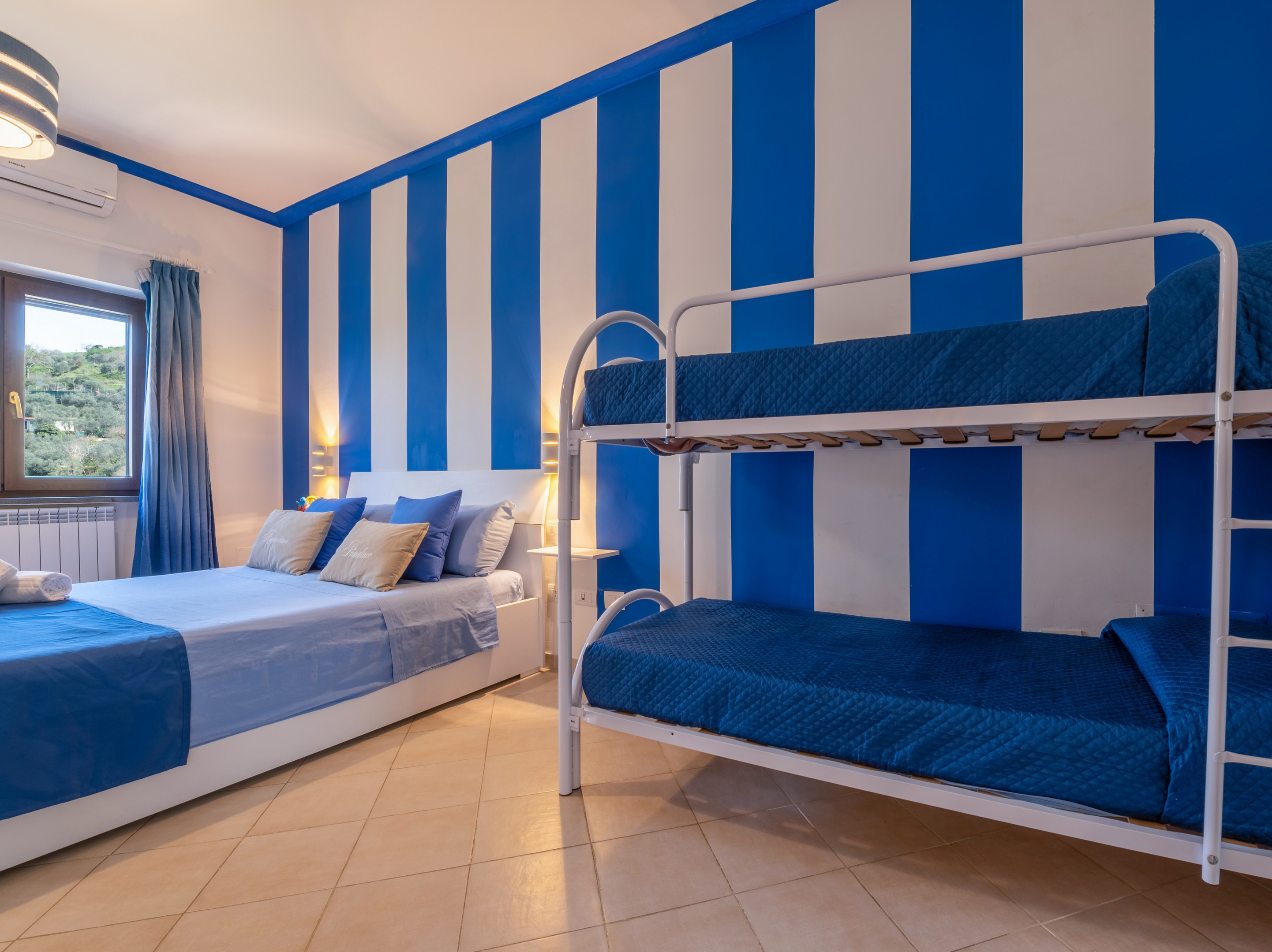 Camera con letto matrimoniale e 1 letto a castello puo' ospitare fino a 4 persone (ma è perfetta anche per due).